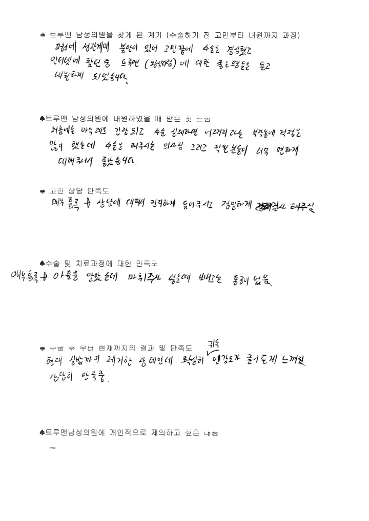 매우 흡족 > 상담에 대해서 진지하게 들어주시고 정밀하게 검사 해주심.