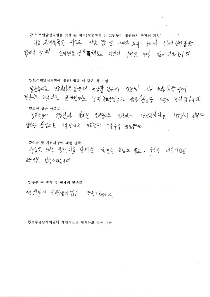 정관수술의 선입견과 잘못된 정보등으로 불안하고 안전한가하는 의구심이 있었으나 정확한 상담으로 해결하고 마음편히 수술할 수 있었습니다.