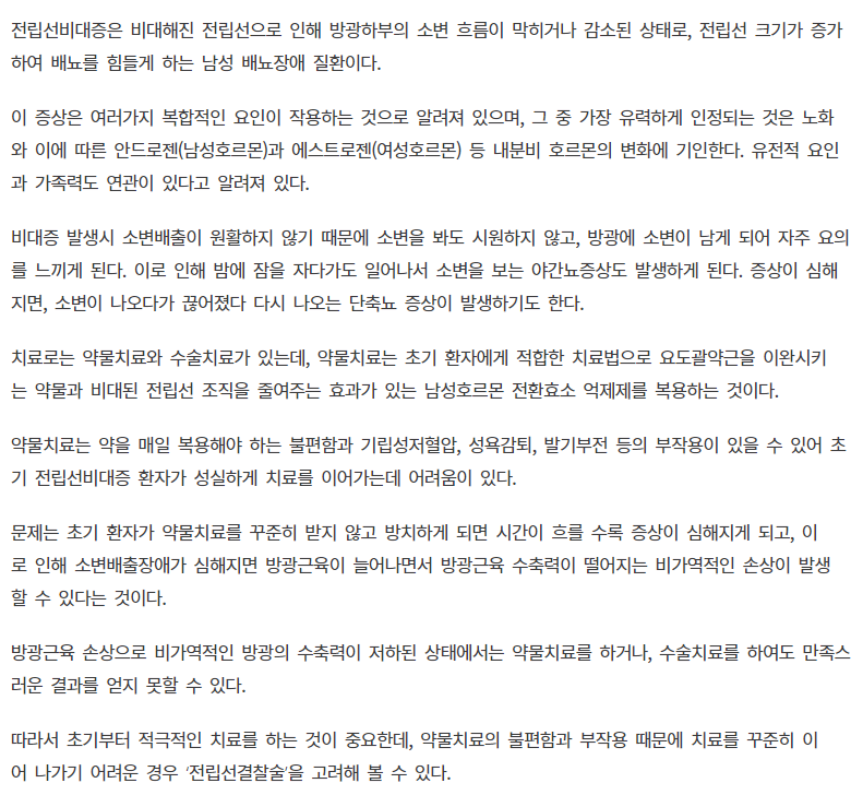 전립선비대증 초기치료가 중요, 지연되면 합병증 일으키기도
