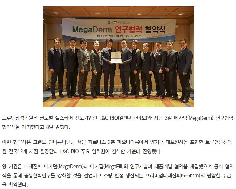 트루맨남성의원-L&C BIO ‘메가덤연구협력’ 공식 협약 실시
